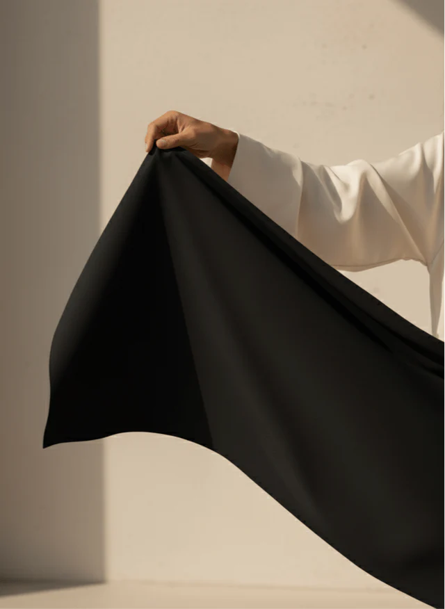Experience timeless elegance with our Black Sheila crafted from Premium Duja Allail. Known for its lightweight feel and soft texture, this fabric drapes beautifully, making it ideal for Sheilas that exude sophistication and grace. Perfect for both everyday wear and special occasions.